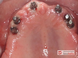 Usunięcie wszystkich zębów w szczęce – widoczne świeże kieszonki poekstrakcyjne