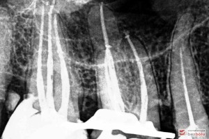 Ocena efektów leczenia kanałowego – czwórka górna prawa, kontrola wypełnienia kanałów