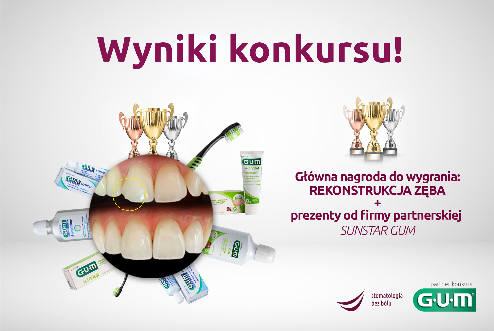 Uwaga! Wyniki konkursu: 40 – elementów sprzętu, 42 – elementów materiału, 4 – osoby personalu stomatologicznego jest zaangażowanych w zabieg.