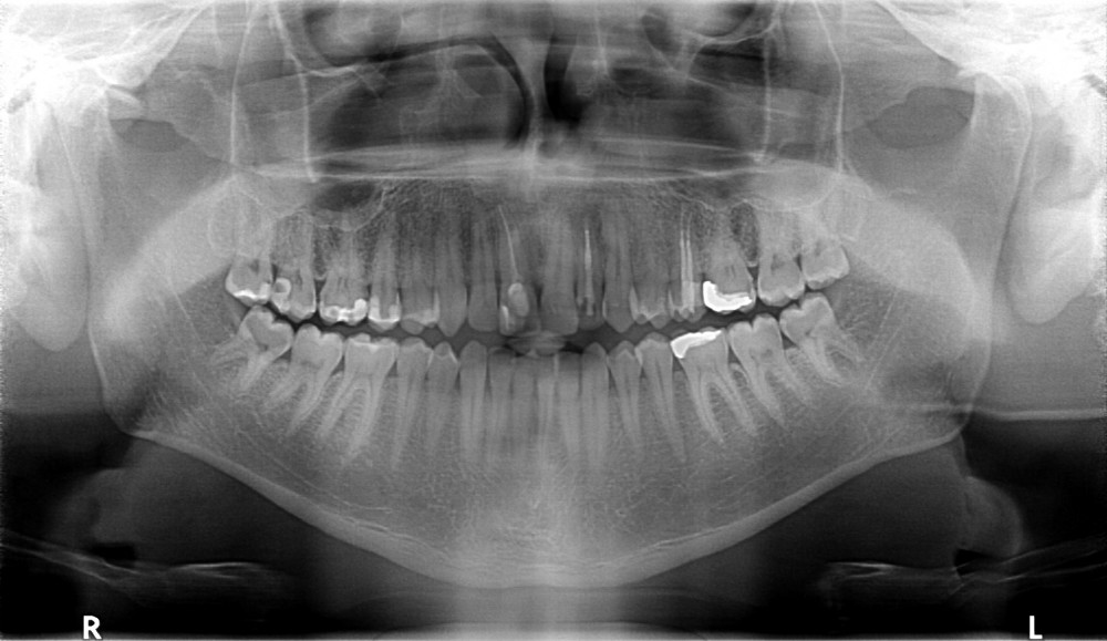 Przykład ekstruzji ortodontycznej za pomocą płytki termoformowalnej i zameczka ortodontycznego: