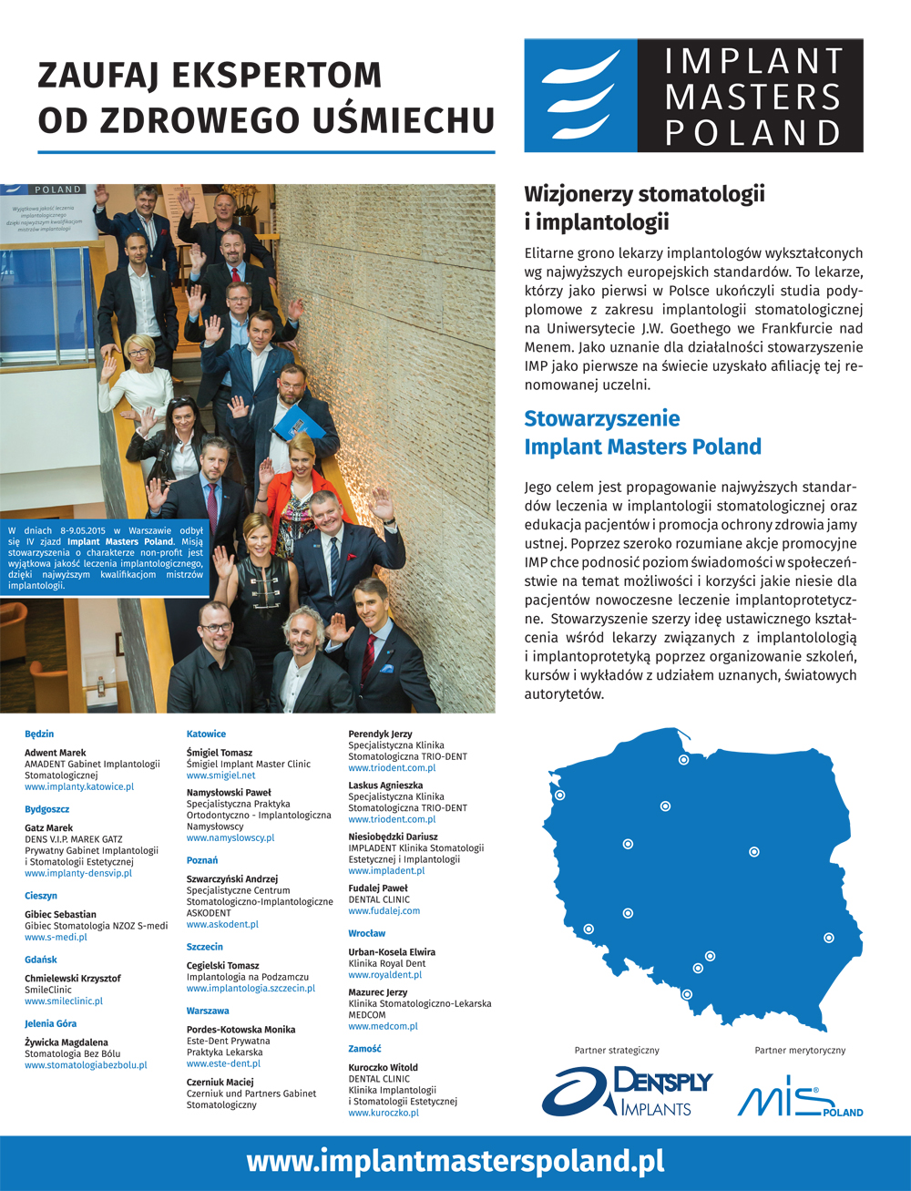 Warto zaznaczyć, że dr Magdalena Żywicka MSc jest jednym z pomysłodawców i założycieli stowarzyszenia Implant Masters Poland. Ta NON-PROFIT organizacja została założona przez grupę pierwszych polskich implantologów, którzy ukończyli prestiżowe studia podyplomowe pt. „Master of Oral Implantology” na Uniwersytecie im. Johanna Wolfgang Goethego we Frankfurcie nad Menem i otrzymali tytuł Master of Science in Oral Implantology. Co godne podkreślenia celem, którzy postawili przed sobą członkowie tego elitarnego stowarzyszenia nie jest działalność komercyjna tylko propagowanie wiedzy nt. implantologii i promocja wysokich standardów pracy lekarza stomatologa-implantologa.