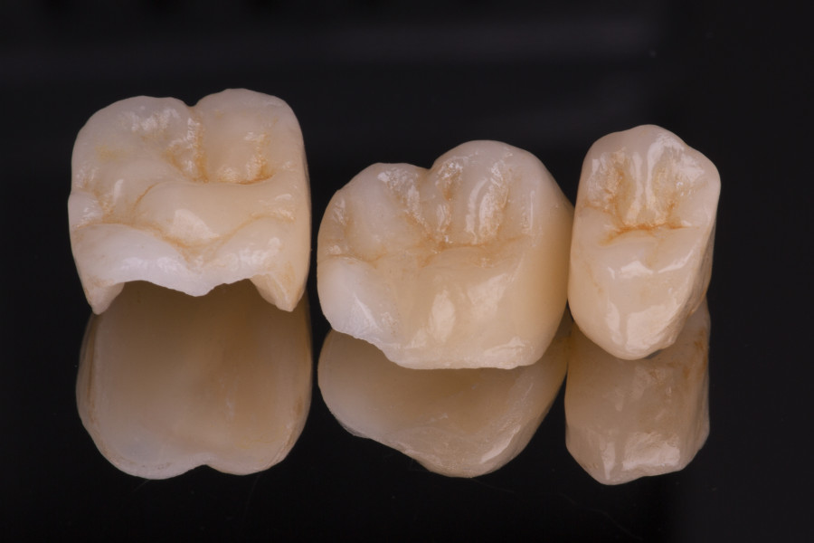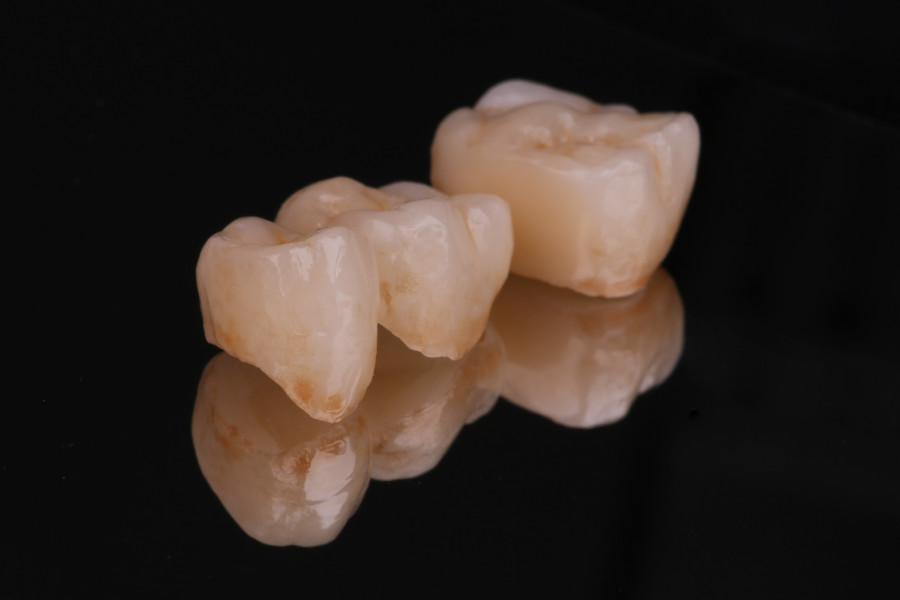 Inlay, onlay, overlay – są ta odbudowy protetyczne, pokrywające większa powierzchnie zęba w porównaniu do wypełnienia wykonanego bezpośrednio przez lekarza w gabinecie stomatologicznym. Nakłady tego typu dzielimy głównie na ceramiczne i kompozytowe i są one wykonywane przez technika dentystycznego w laboratorium protetycznym. Dany przypadek ukazuje trzy overlay’e ceramiczne wykonane przez naszą techniczkę Olgę. W celu ich przygotowania użyła ona tabletek e.maxx press LT w kolorze A3, a następnie obrobiona powierzchnie pokryła farbkami essence, zmieszanymi ze sobą w różnych kombinacjach.