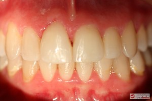 Młoda pacjentka zgłosiła się do gabinetu celem korekty uśmiechu. Wykonano analizę cefalometryczną i analizę modeli diagnostycznych oraz ustalono plan leczenia polegający głównie na korekcie stłoczeń i osi nachylenia przednich zębów. Czas trwania leczenia aktywnego wyniósł 2 lata. Następnie w dolnym łuku naklejono stały retainer, zaś na górny łuk wykonano płytkę retencyjną.