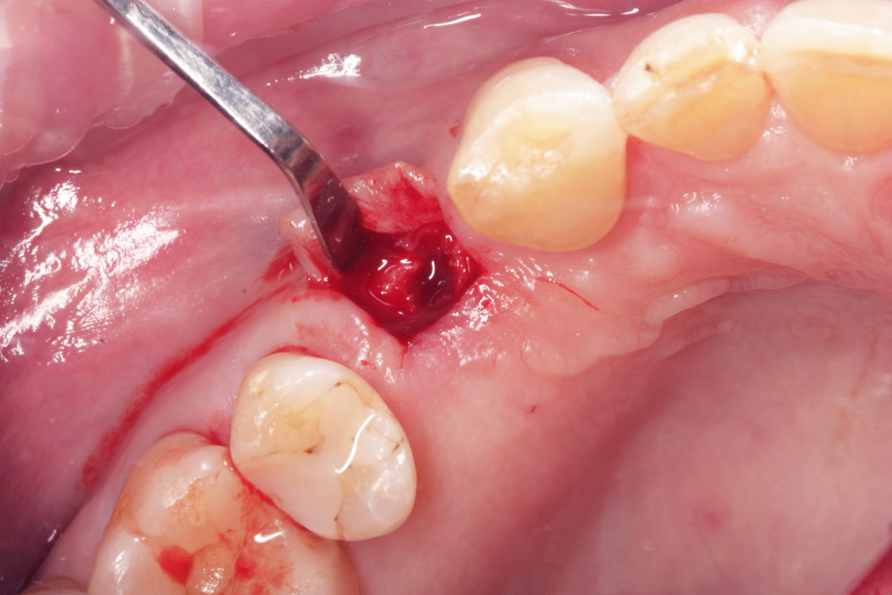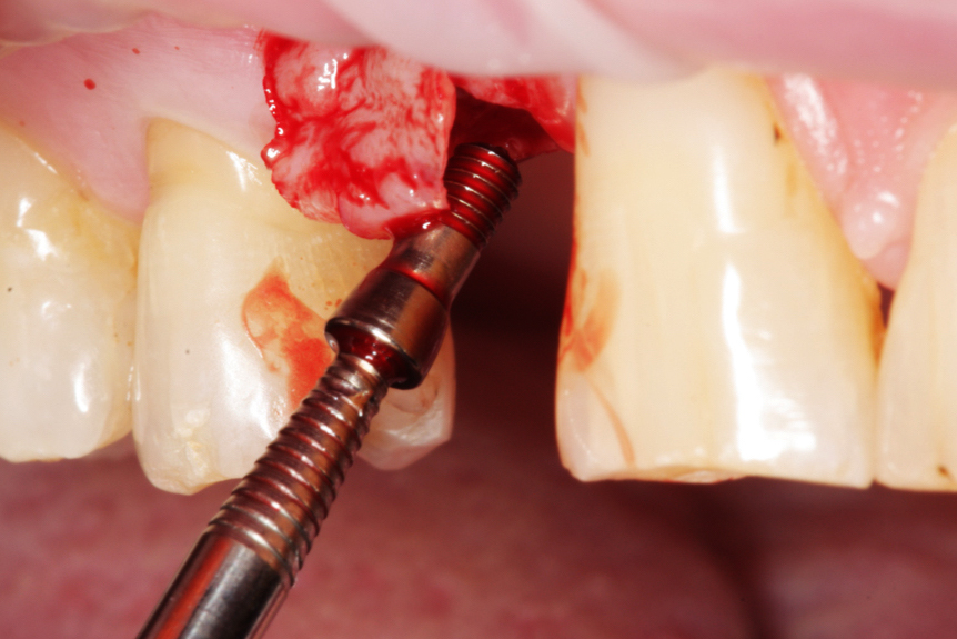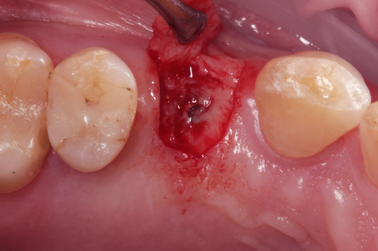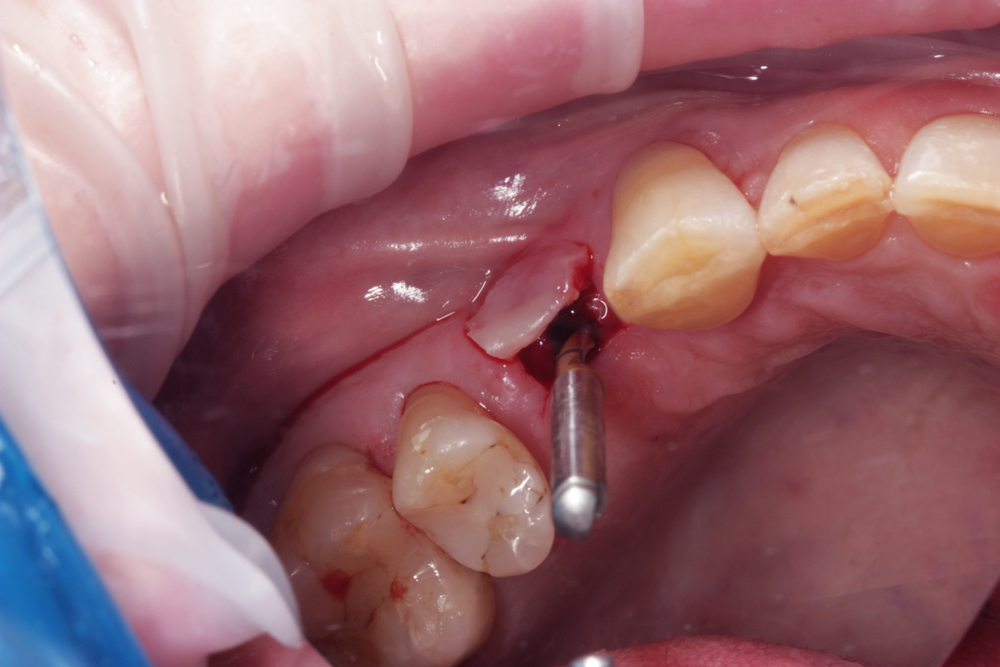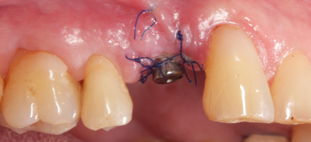 Zeszycie rany po ekspozycji implantu – widok od powierzchni okluzyjnej