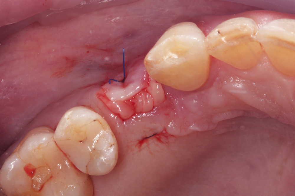 Zeszycie rany po ekspozycji implantu – widok od strony policzkowej