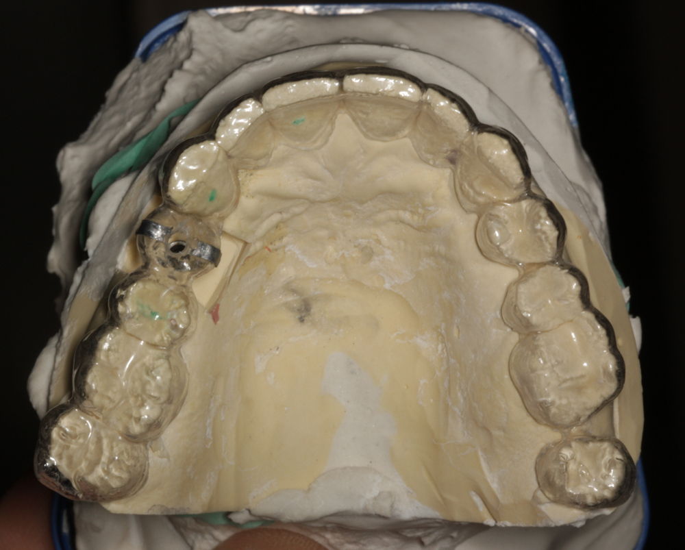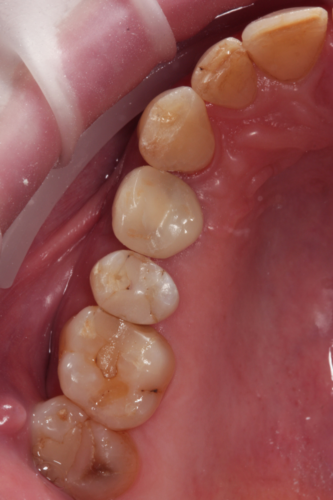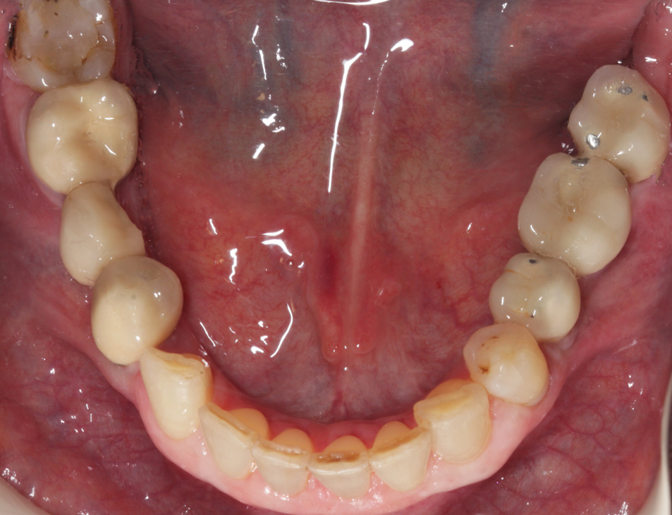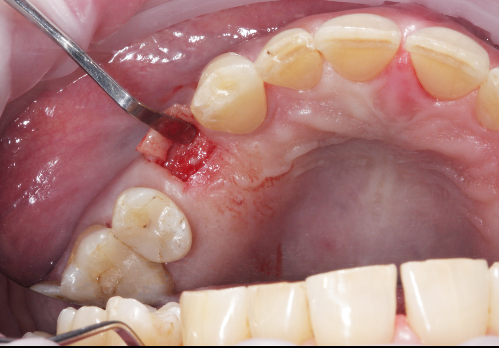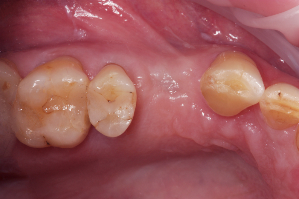 Sytuacja wewnątrzustna przed odsłonięciem implantu – widok od powierzchni okluzyjnej