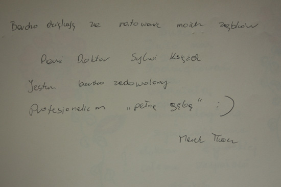 Dziękuję Pani Doktor za leczenie 10.03.2011 r. i badanie przez Panią Sylwię Książek