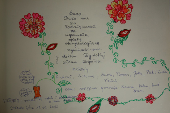 Dużo, dużo nas do podziękowań za wspaniałą opiekę stomatologiczną i życzliwość – serce p. doktor Żywickiej i całemu zespołowi