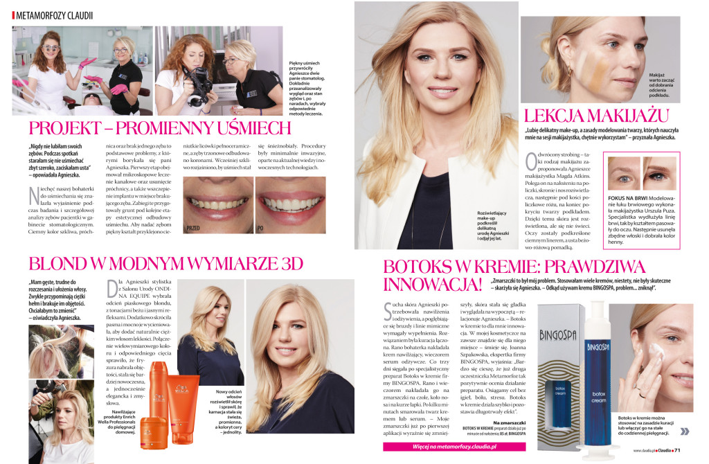 Wszyscy w jednej chwili uzmysłowili sobie, że dzięki ciężkiej i wielogodzinnej pracy na Jej twarzy i w oczach pojawiło się szczęście, satysfakcja i przekonanie o własnej wartości i urodzie. Metamorfoza dokonała się nie tylko w sposób fizyczny, ale przede wszystkim mentalny. Pani Agnieszka zmieniła się jako kobieta w sposób niezwykły. Jej szczęście stało się udziałem zespołów medycznych obu placówek stomatologicznych (Magic Dental Studio i NZOZ Stomatologia Bez Bólu).