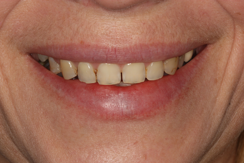 Wstępne badania, a następnie szczegółowa analiza wyników ukazała pełny obraz stanu uzębienia pani Agnieszki: starte, o ciemnym kolorzezniszczone próchnicą zęby oraz brak jednego z nich. Niestety wszystko to było widoczne przy najmniejszej nawet próbie uśmiechu.