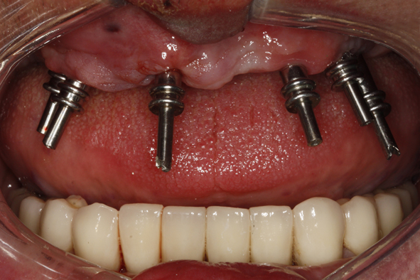 18. Wprowadzenie 4 implantów w odcinku przednim żuchwy – Odbudowa protetyczna na implantach