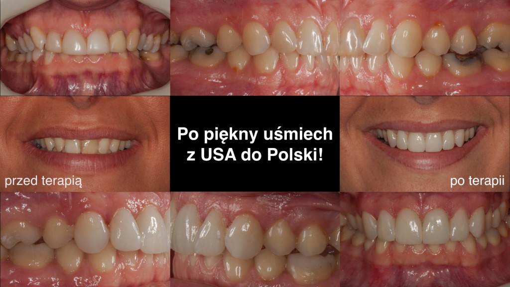 Młoda, zadbana pacjentka na stałe zamieszkała w USA przyleciała do Polski celem korekcji zębów przedniego odcinka w szczęce. Główną determinantą była za mała ekspozycja górnych siekaczy w uśmiechu. Przebarwienie siekacza centralnego powodowało niekorzystne wrażenie estetyczne. Pacjentka zgłosiła się z gotową koncepcją – chciała licówki na zęby górne.