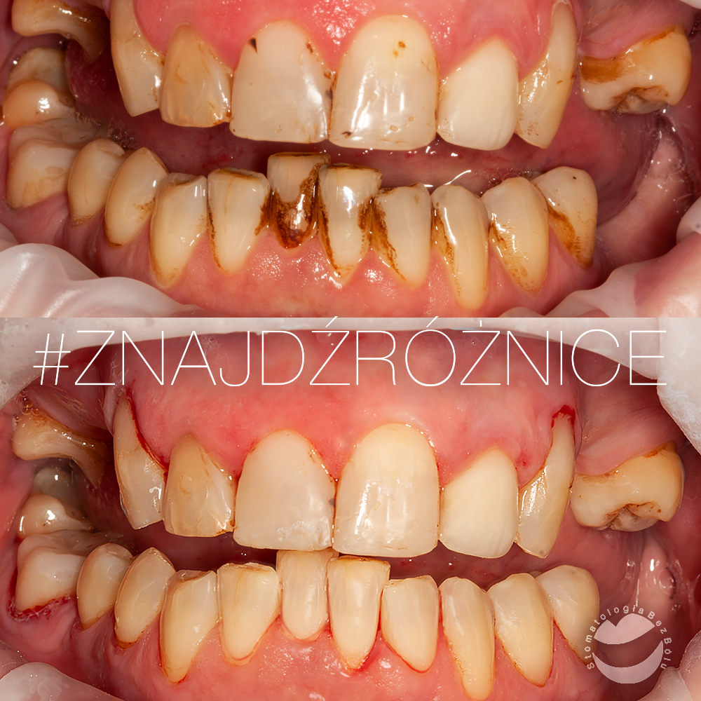 Zabieg polegał na wykonaniu piaskowania i skalingu nad- i poddziąsłowego.