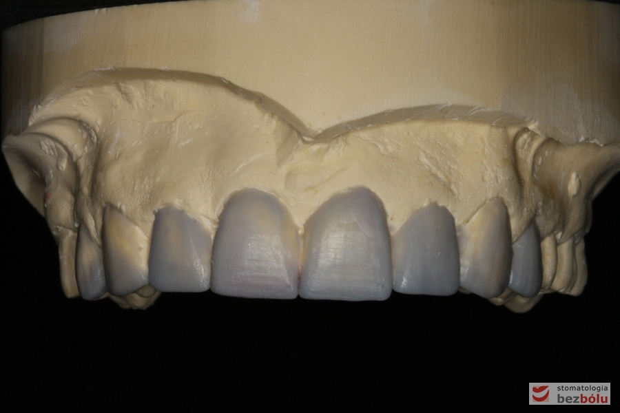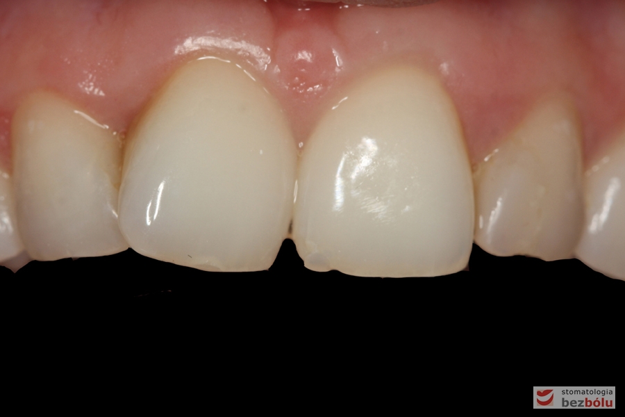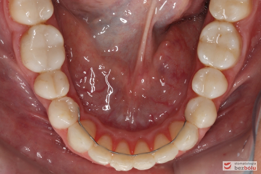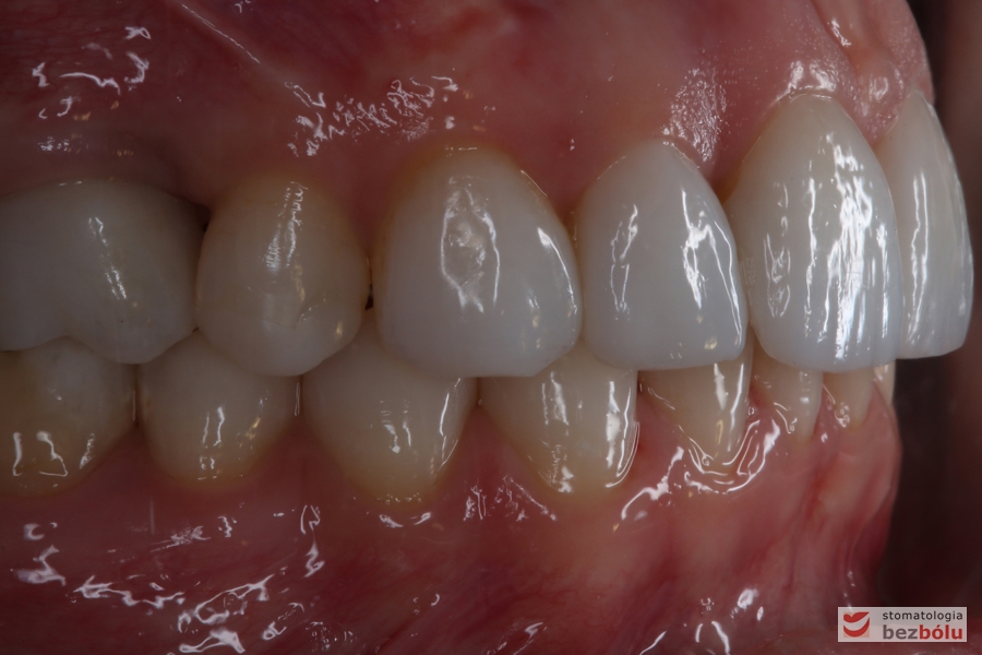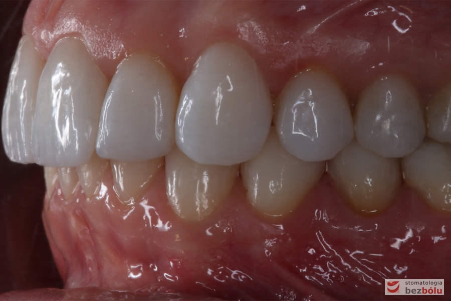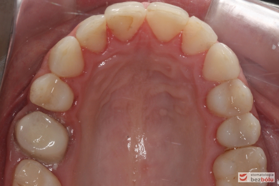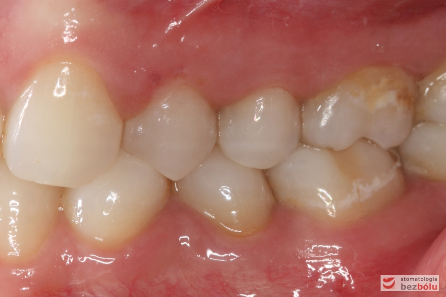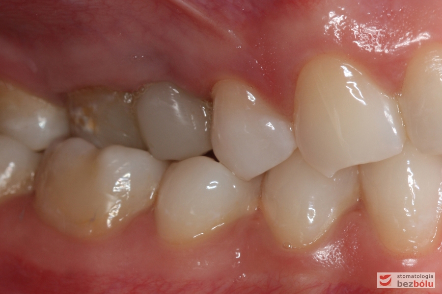 Nadmiar miejsca po brakującej „piątce” po stronie prawej wykorzystany do rekonstrukcji „szóstki”, utrzymana mezjorotacja „siódemki” zamykającej luki
