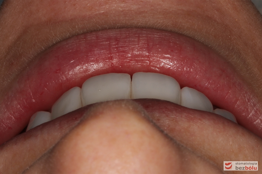 Ocena brzegów siecznych w uśmiechu względem wargi dolnej