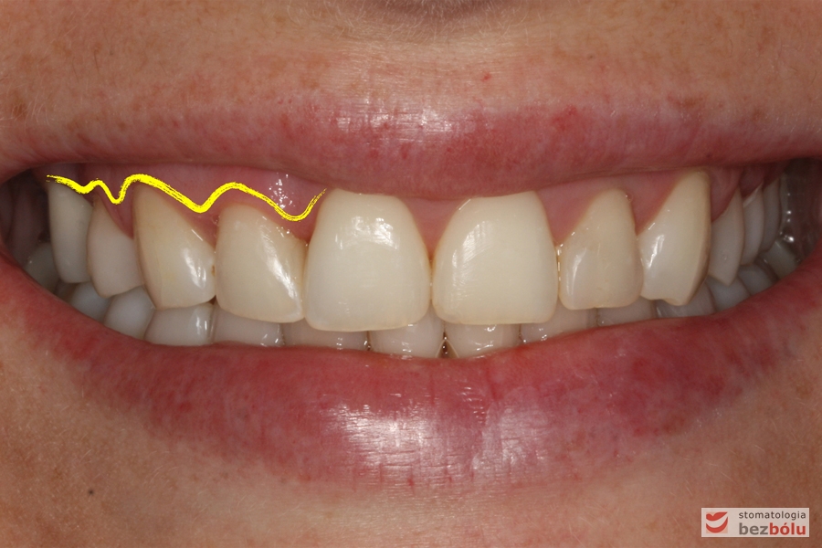 Diagnostyka – nieregularna linia dziąsła, proporcje zębów ~85%