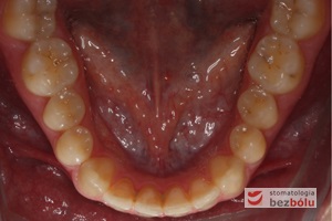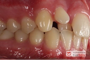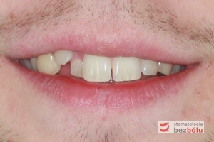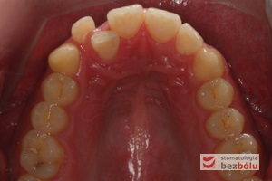 Młody 28-letni, pogodny, stale uśmiechnięty pacjent zgłosił się celem korekcji wad zębowych ograniczających pełną ekspresję uśmiechu. Głównym problemem był dodatkowy siekacz boczny (dwójka) po stronie prawej w łuku górnym. Dodatkowy ząb spowodował stłoczenia pozostałych zębów w łuku górnym oraz przesunięcie linii pośrodkowej. Obliczenia dostępnego miejsca dla siekacza bocznego wpłynęły na wybór zęba przeznaczonego do ekstrakcji. Usunięto dwójkę ustawioną dowargowo, zaś jej „siostrę bliźniaczkę” skierowaną w stronę podniebienia wprowadzono do łuku zębowego w drodze leczenia ortodontycznego. Problemem było szczelne zamknięcie szpary poekstrakcyjnej z powodu nadmiaru miejsca w kości. Wyrównano linię pośrodkową. Leczenie przeprowadzono jednym łukiem ortodontycznym górnym, dolny łuk zębowy nie wymagał założenia aparatu. Po zdjęciu zamków korekcję detali przeprowadzono z użyciem pozycjonera wykonanego w technice termoformingu. Stabilizację efektów leczenia zapewnił stały retainer klejony do powierzchni podniebiennych siekaczy górnych.