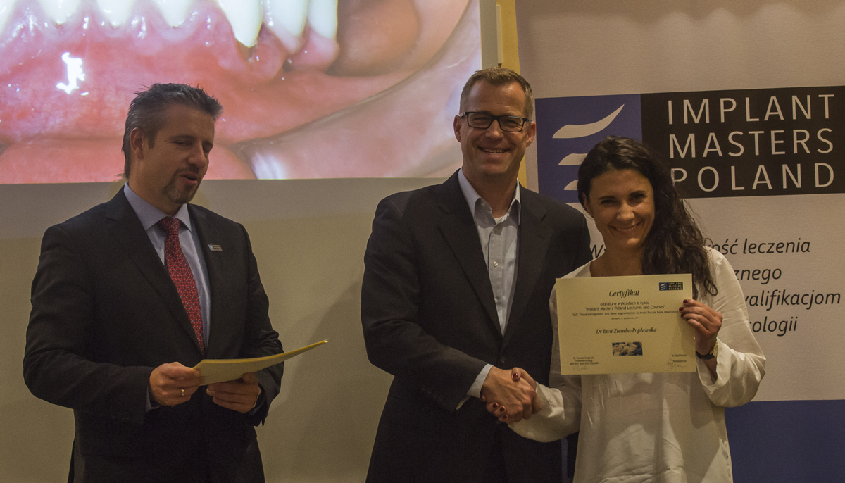 Pierwszym zaproszonym przez Implant Masters Poland wykładowcą był dr Olaf Daum z Heidelbergu. Zaprezentował on wykład pt.: „Soft Tissue Management and Bone Augmentation to Avoid Future Bone Resorption”. Tematyka bardzo aktualna i ważna dla wszystkich implantologów. Zaprezentował On przykłady skomplikowanych przypadków, wyszczególnił możliwe błędy w technice zabiegowej oraz następstwa do jakich mogą doprowadzić proceduralne zaniechania. Wskazał często pomijane w czasie zabiegu szczegóły, które z reguły decydują o końcowym sukcesie klinicznym lub terapeutycznej porażce. Wykład był jak najbardziej interaktywny. Poszczególne komplikacje oraz metody ich zapobiegania i rozwiązywania były żywo dyskutowane przez obecnych na sali w Hotelu Polonia Palace, masterów oraz zaproszonych gości. Uczestnicy dyskusji aktywnie dzielili się swoimi doświadczeniami i spostrzeżeniami. Dwóch gości zaprezentowało swoje przypadki powikłań, które również zostały w koleżeńskiej atmosferze omówione. Bezpośrednia i szczera wymiana uwag i życzliwe sugestie dot. występujących problemów medycznych to najbardziej preferowana i oczekiwana forma wymiany doświadczeń, skupionych w ramach Implant Masters Poland.