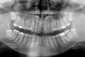 27-latni pacjent zgłosił się do naszej placówki z prośbą o pomoc polegającą na kontynuacji leczenia kanałowego, trwającego już wiele miesięcy. Leczenie przedłużało się z powodu powikłania w postaci złamanego narzędzia endodontycznego, które uniemożliwiało dezynfekcję systemu kanałowego na całej długości. Dodatkową trudnością była lokalizacja narzędzia w połowie długości korzenia za krzywizną kanału, co uniemożliwiało jego widoczność w mikroskopie. Podjęto próbę ominięcia („by passa”) narzędzia, co niestety nie powiodło się. Nieocenioną pomocą w tym precyzyjnym zabiegu okazała się tomografia wolumetryczna, która „sięgała, gdzie wzrok nie sięgał” i ułatwiła bezpieczne usunięcie narzędzia, a następnie pełną dezynfekcję i szczelne wypełnienie systemu korzeniowego. Zabieg trwał 4 godziny (2 wizyty po 2 godziny) i dzięki olbrzymiej cierpliwości pacjenta i precyzji operatora zakończył się sukcesem.