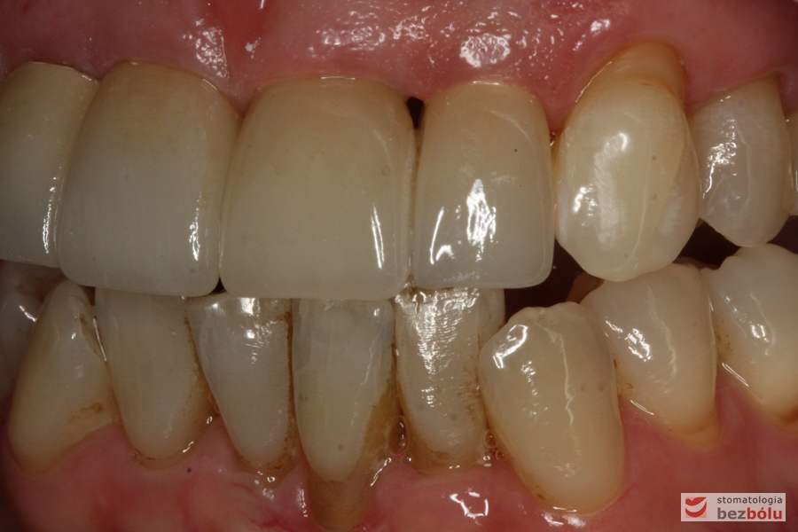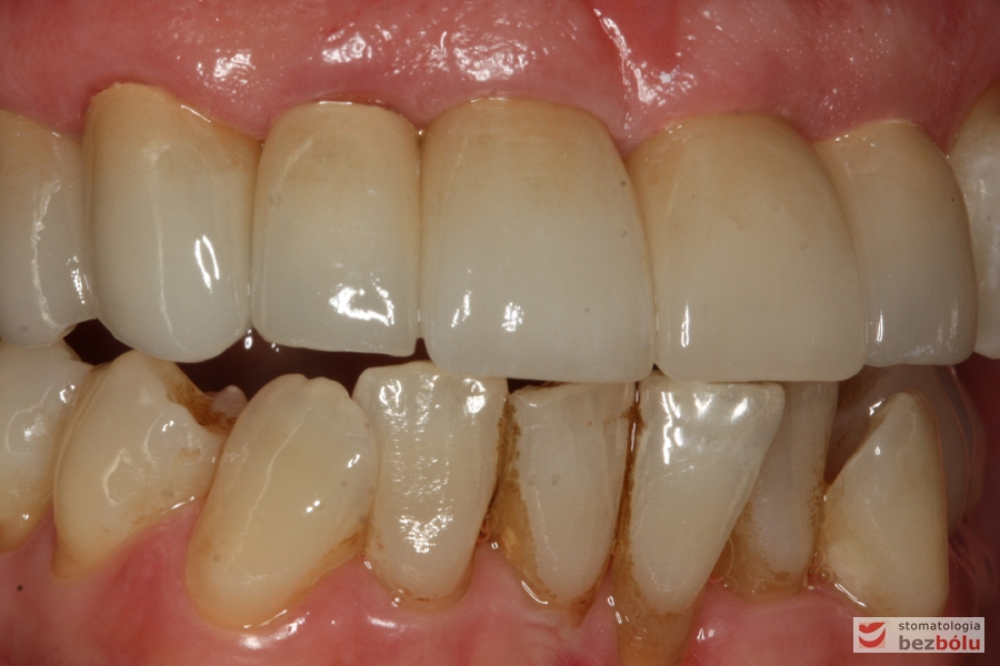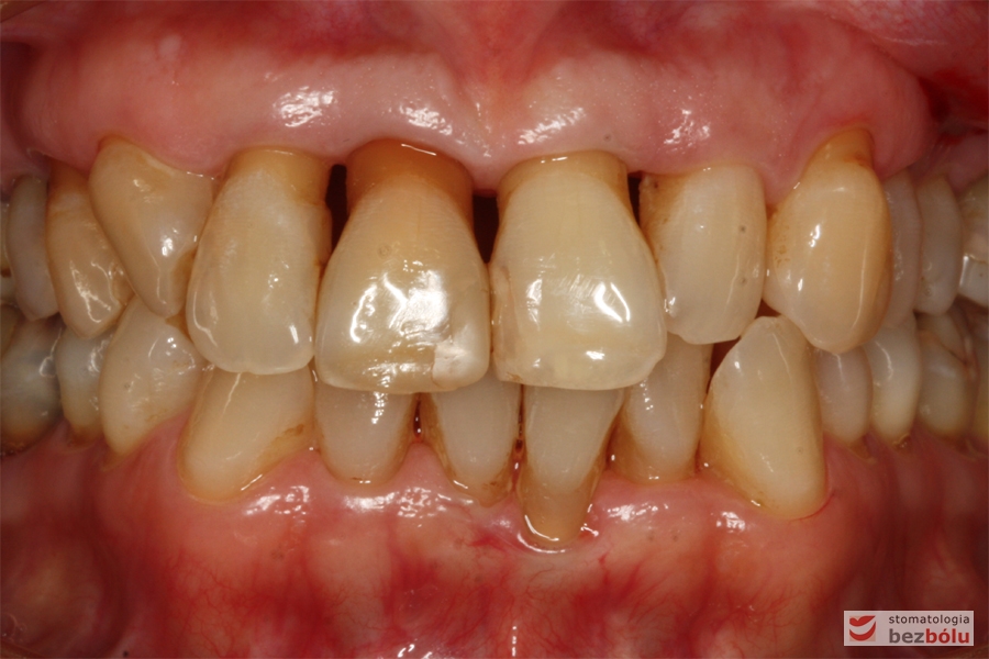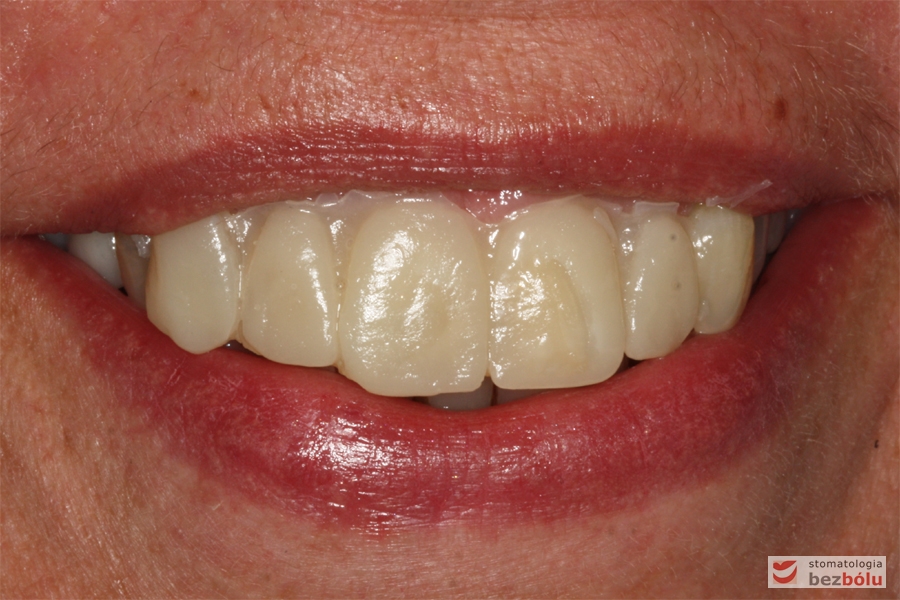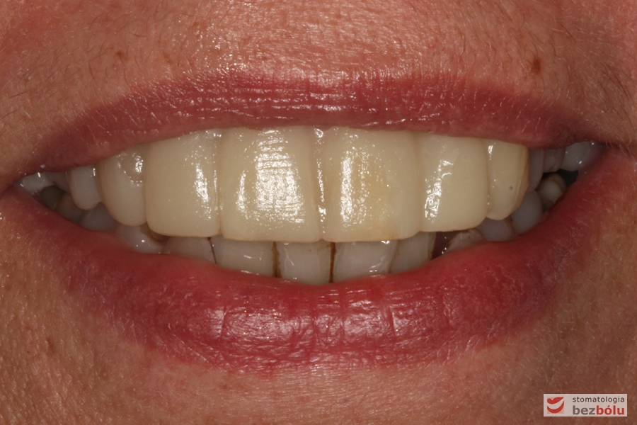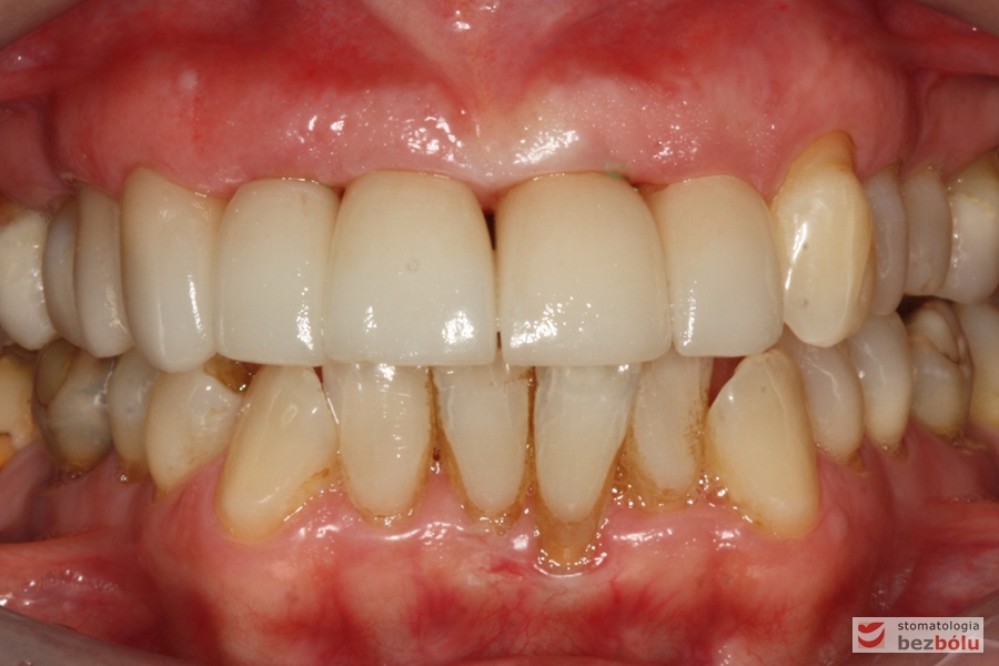 Pani w średnim wieku ze świadomością deficytów estetycznych uzębienia, zgłosiła się celem uporządkowania jamy ustnej. Swoje oczekiwania opierała na doświadczeniu lekarza prowadzącego. Co unikalne w obecnych czasach nie naciskała na tempo leczenia i chciała metodycznie doprowadzić swoje uzębienie do optymalnego stanu. Główną skargą były wydłużone siekacze centralne, stłoczenia, dyskoloracje i cechy choroby przyzębia.
