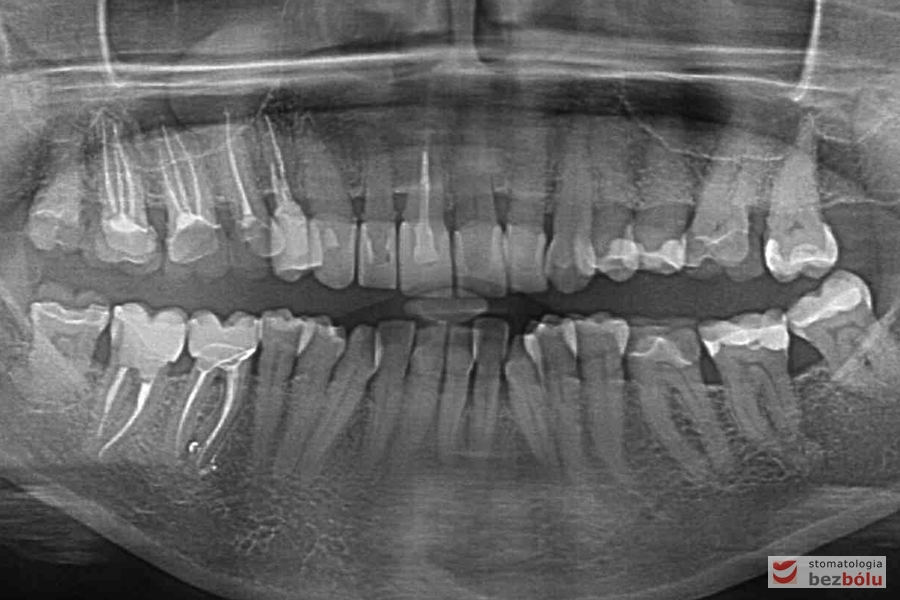Radiowizjografia – szóstka, piątka, czwórka prawa w szczęce, wszystkie kanały niedopełnione
