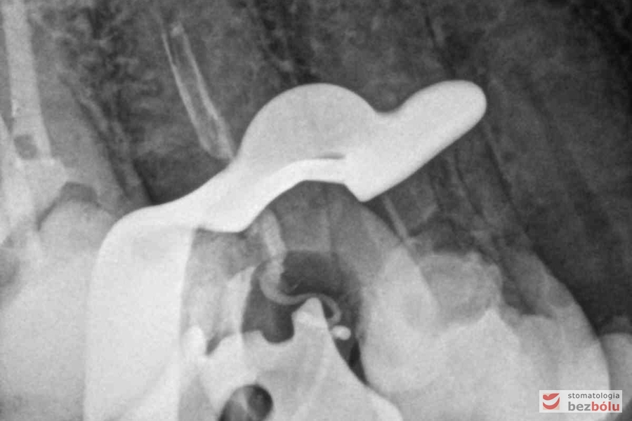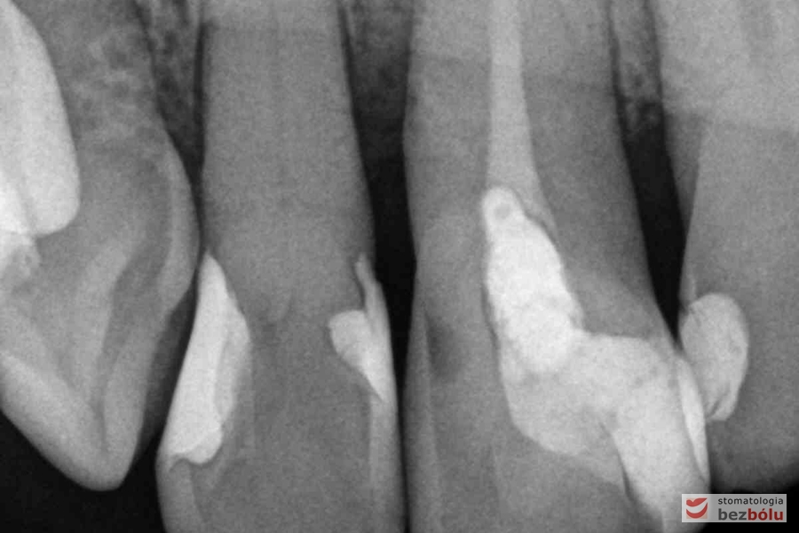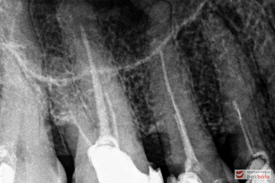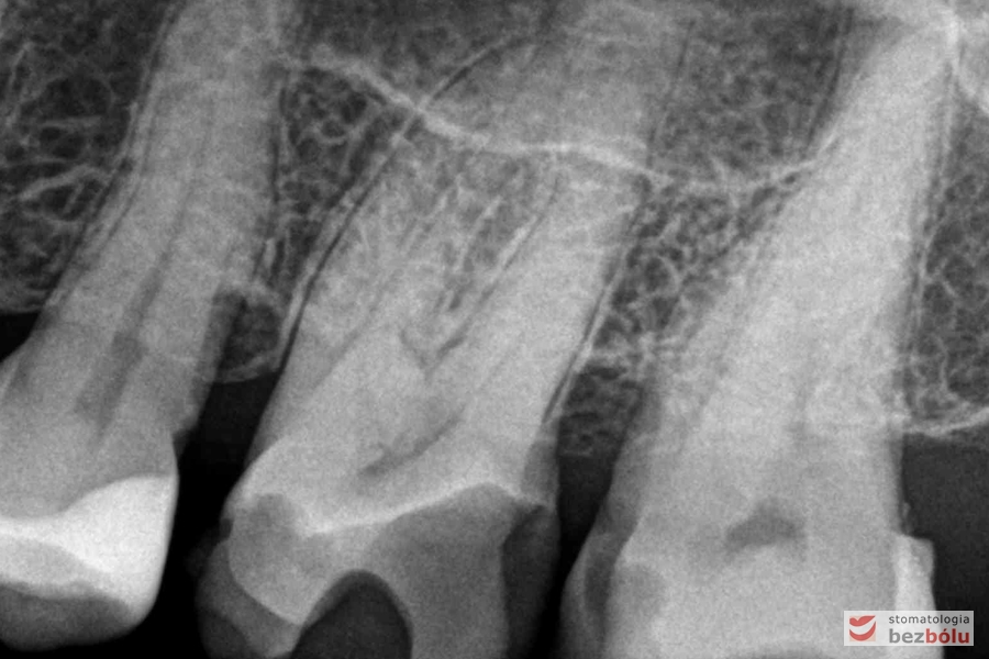 Ocena efektów leczenia kanałowego – czwórka górna prawa, kontrola wypełnienia kanałów