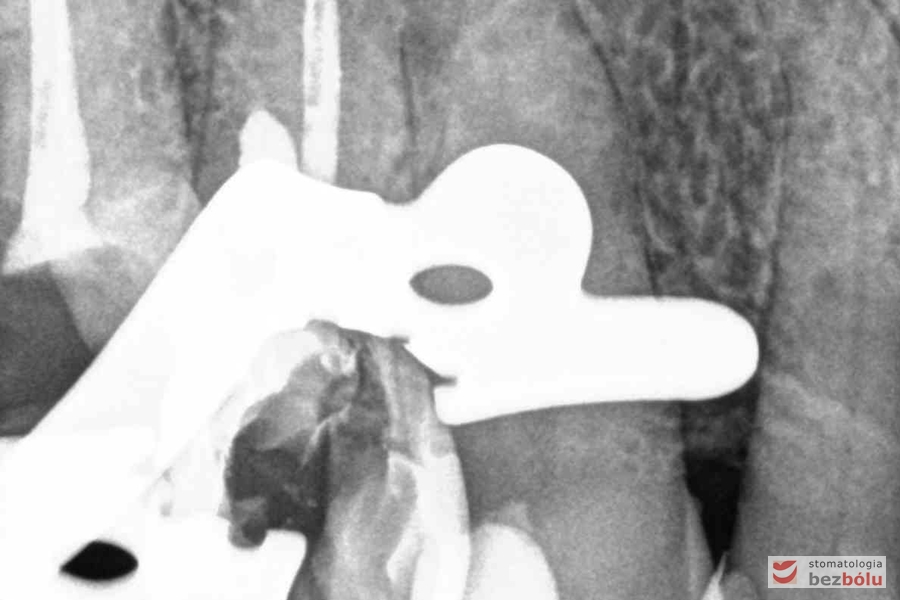 Ocena efektów leczenia kanałowego – piątka górna prawa, śródendodontyczna ocena wypełnienia szczytu