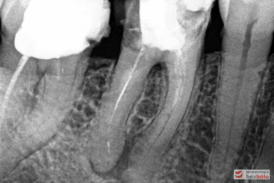 Ocena efektów leczenia kanałowego – szóstka dolna prawa, liczne kanały boczne przyczyną zmian zapalnych